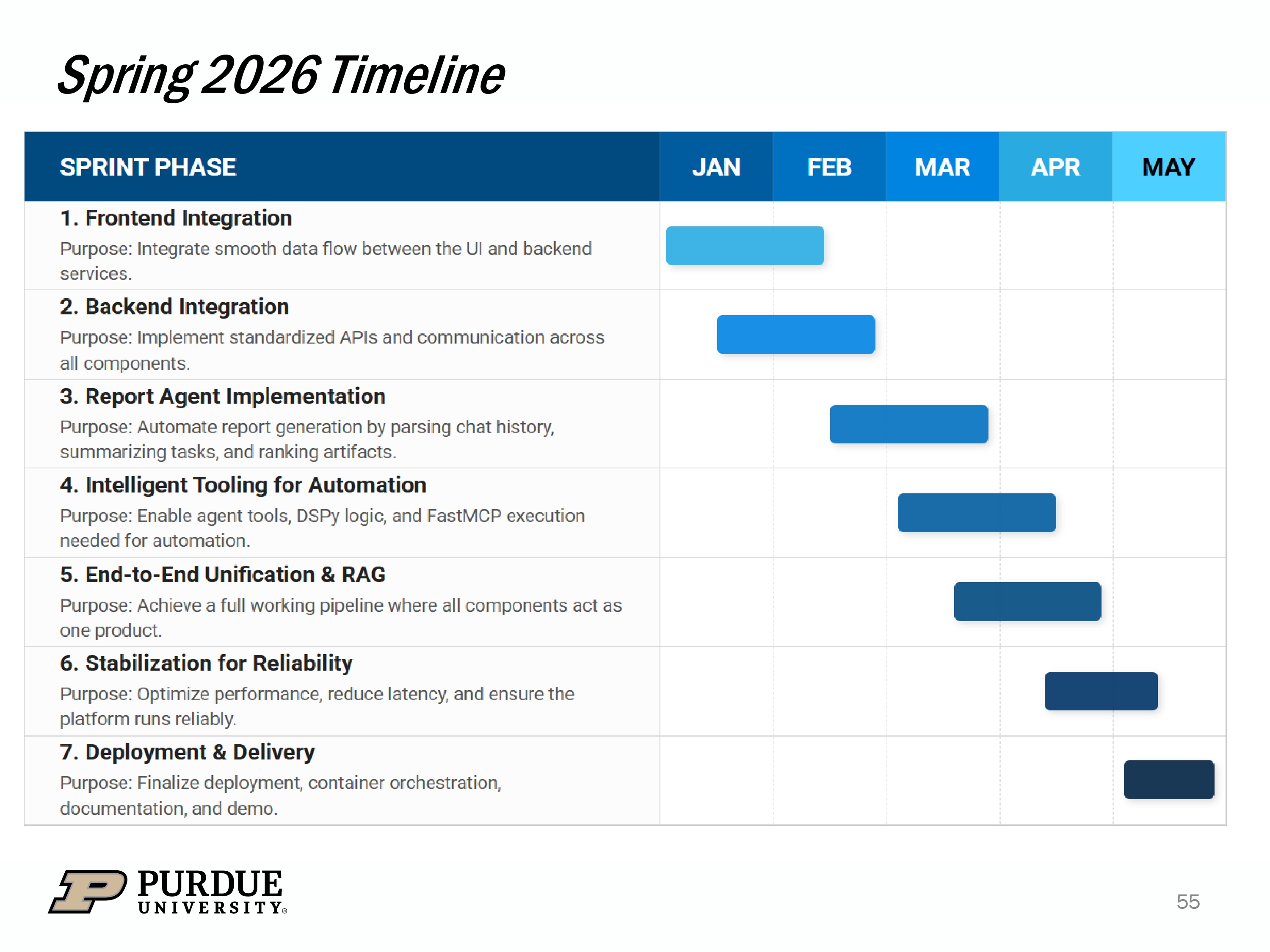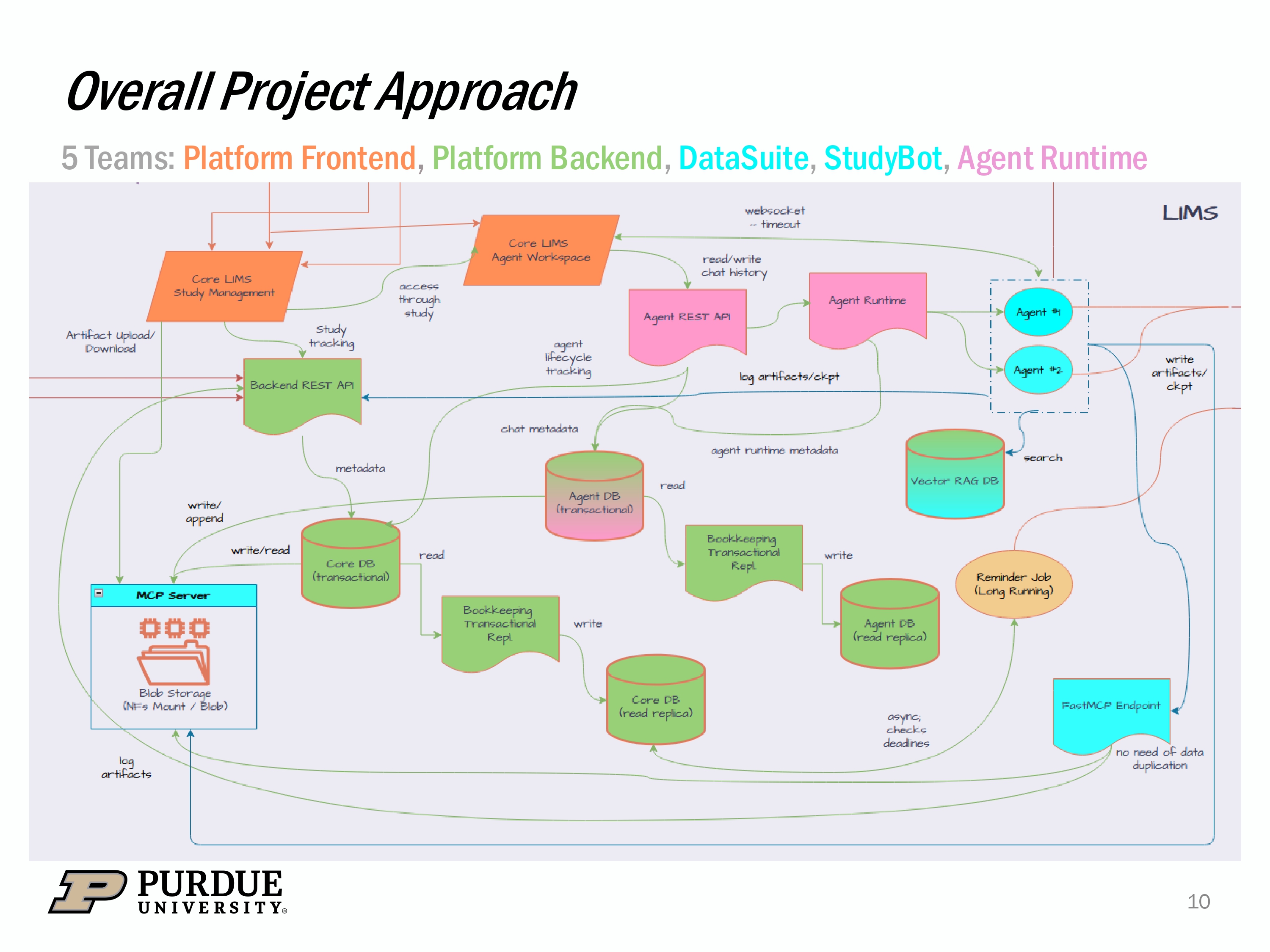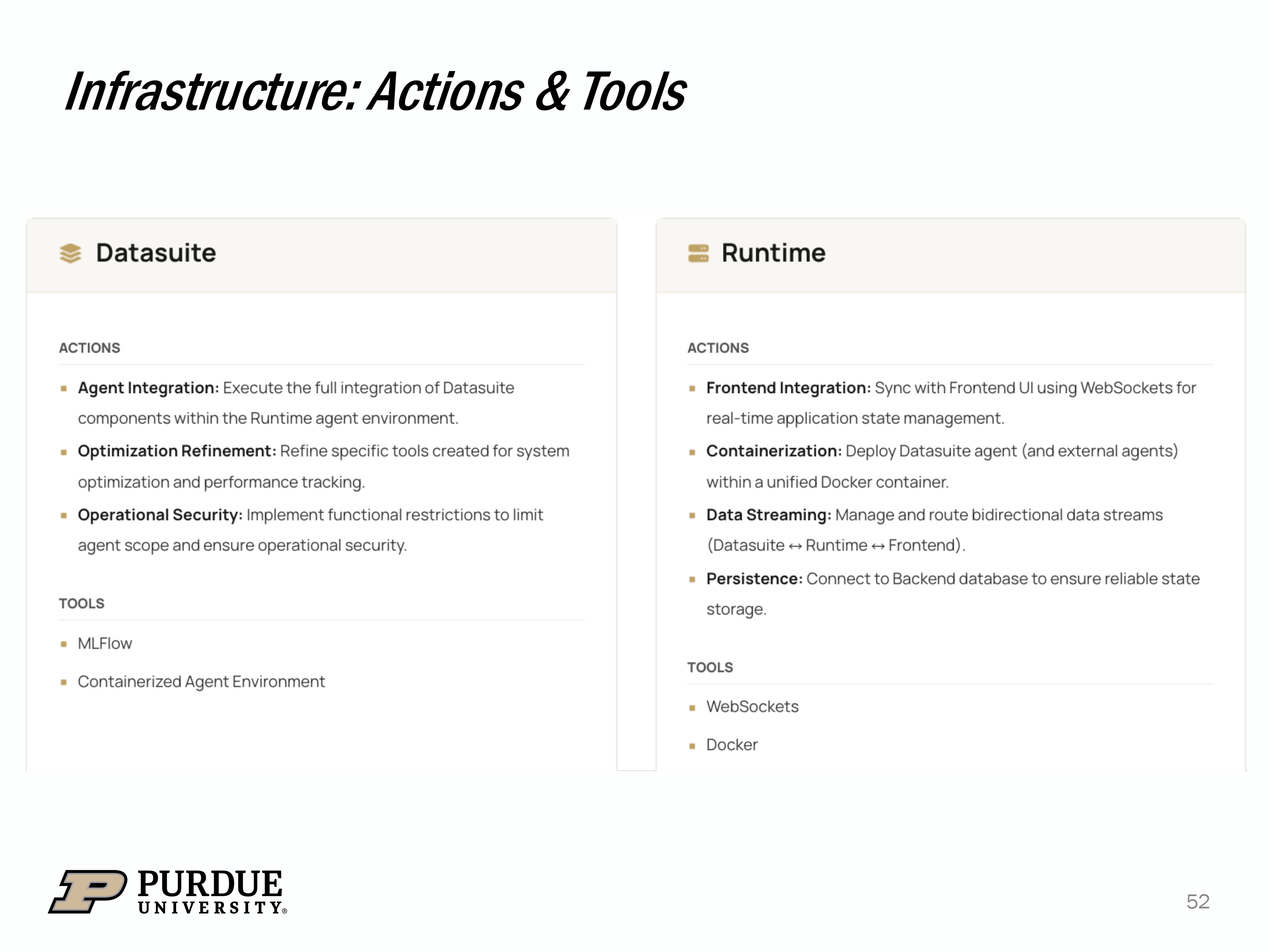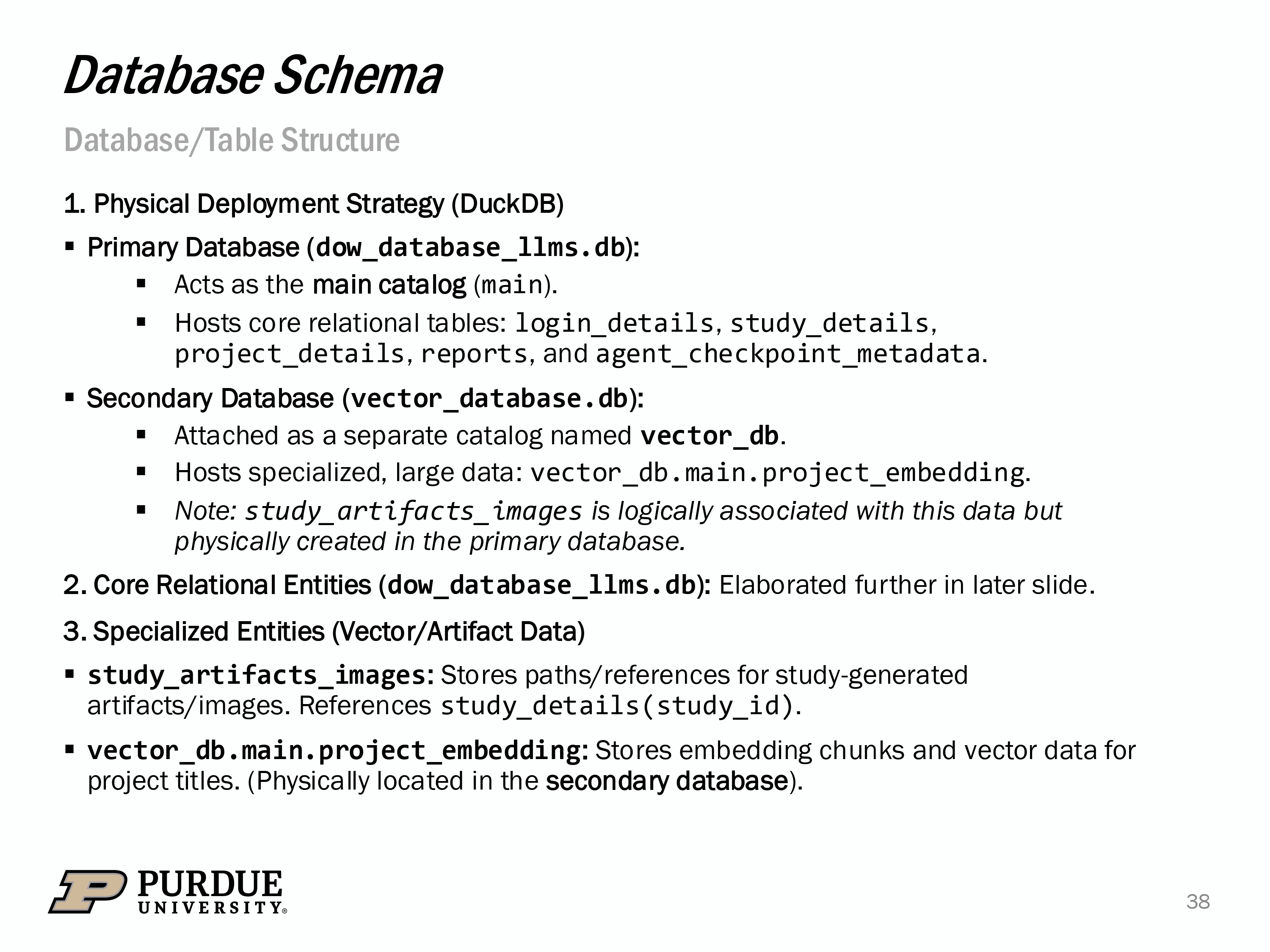 - Architecting full-stack layer integrating FastAPI backend, Dash frontend, LangGraph/DSPy agents & DuckDB vector search on RCAC Anvil.