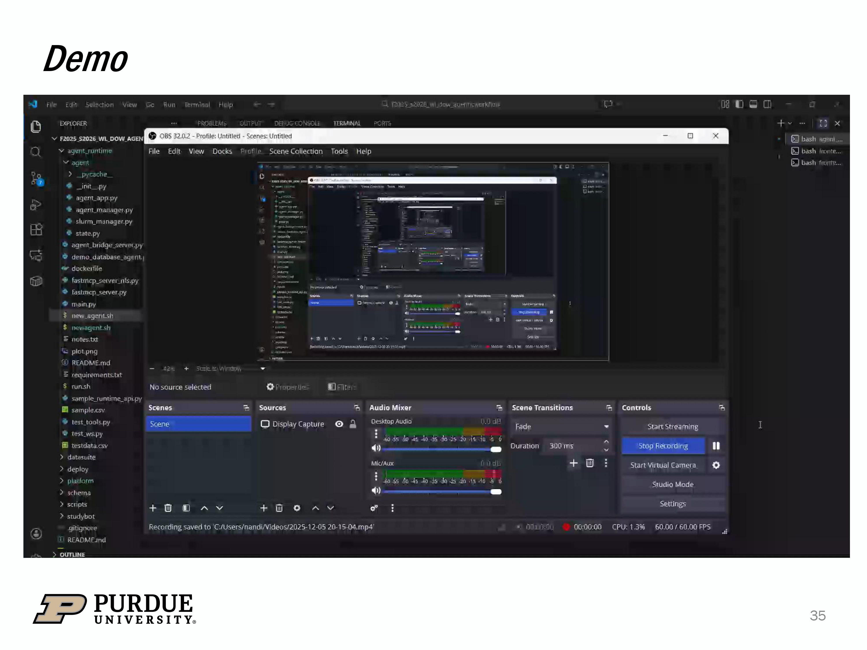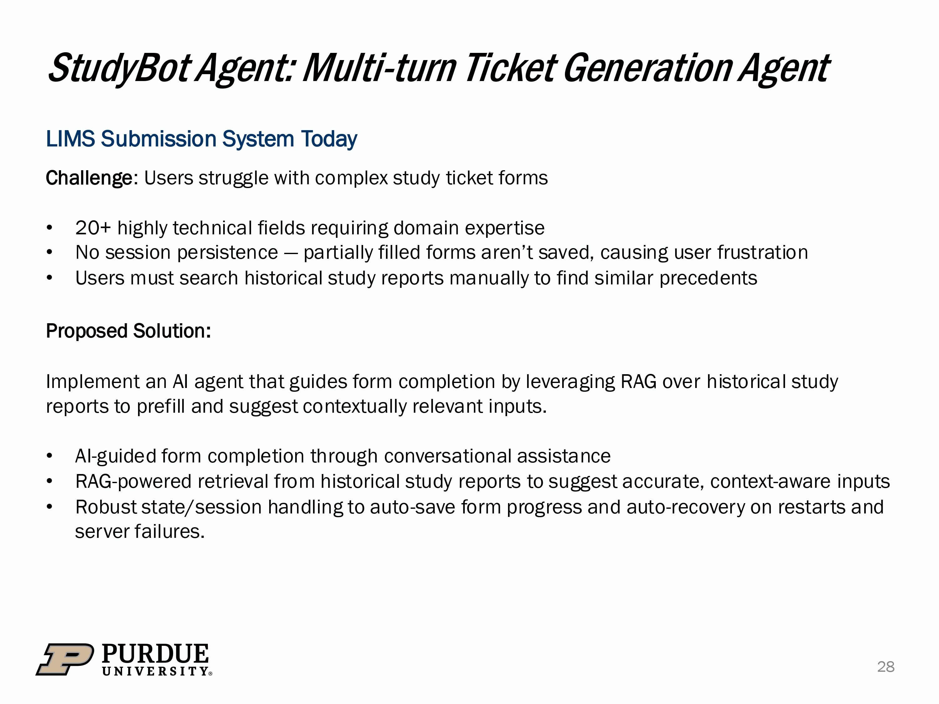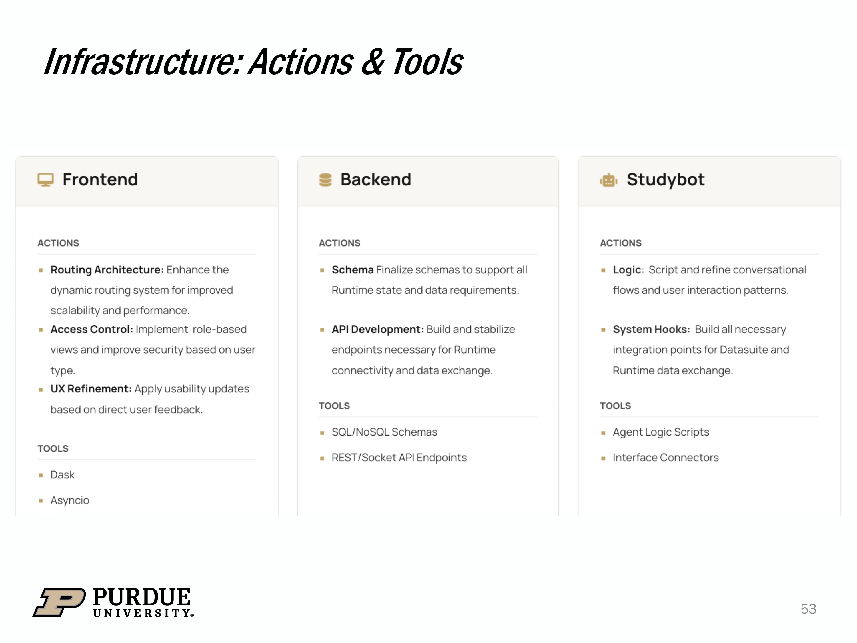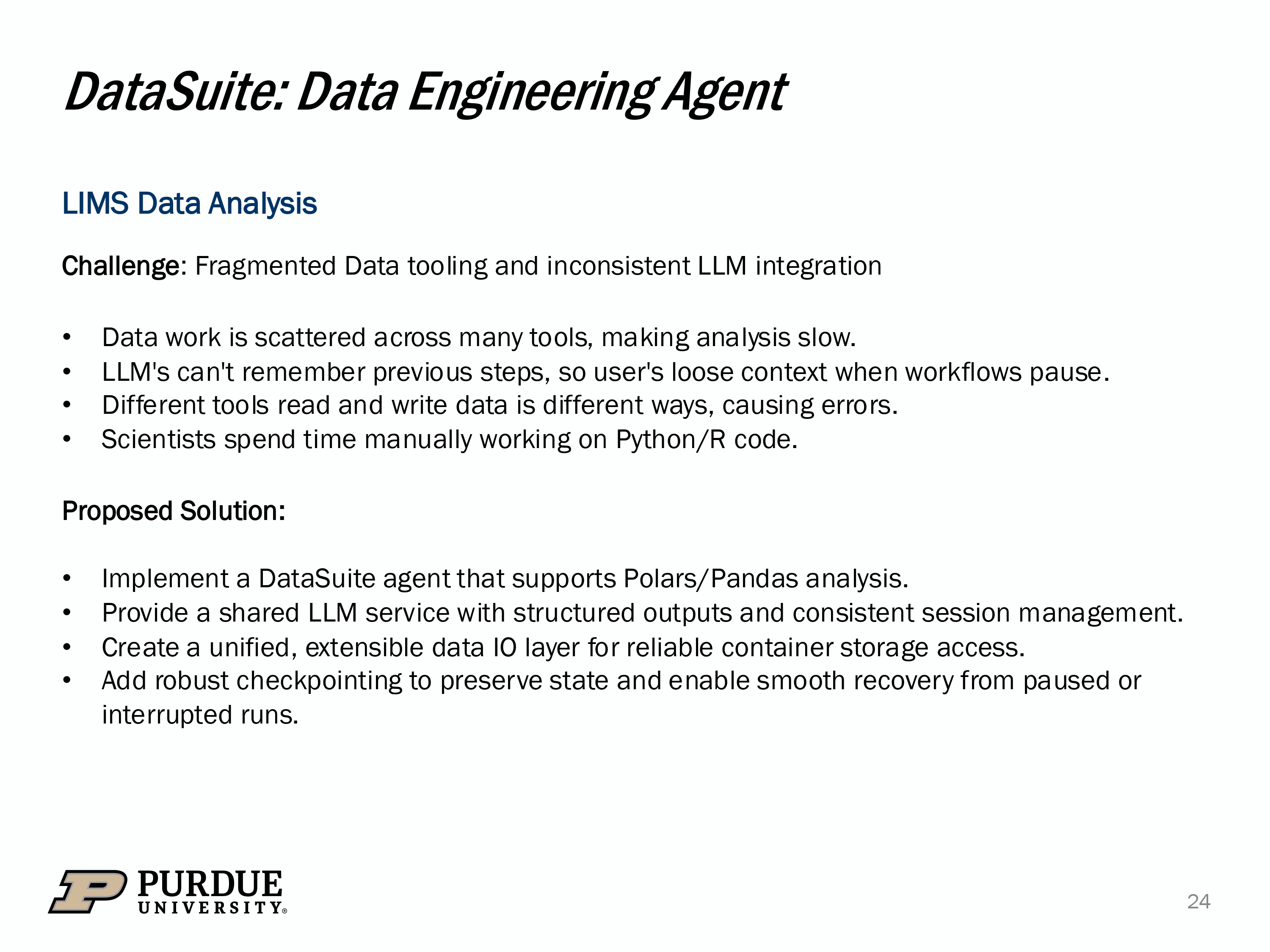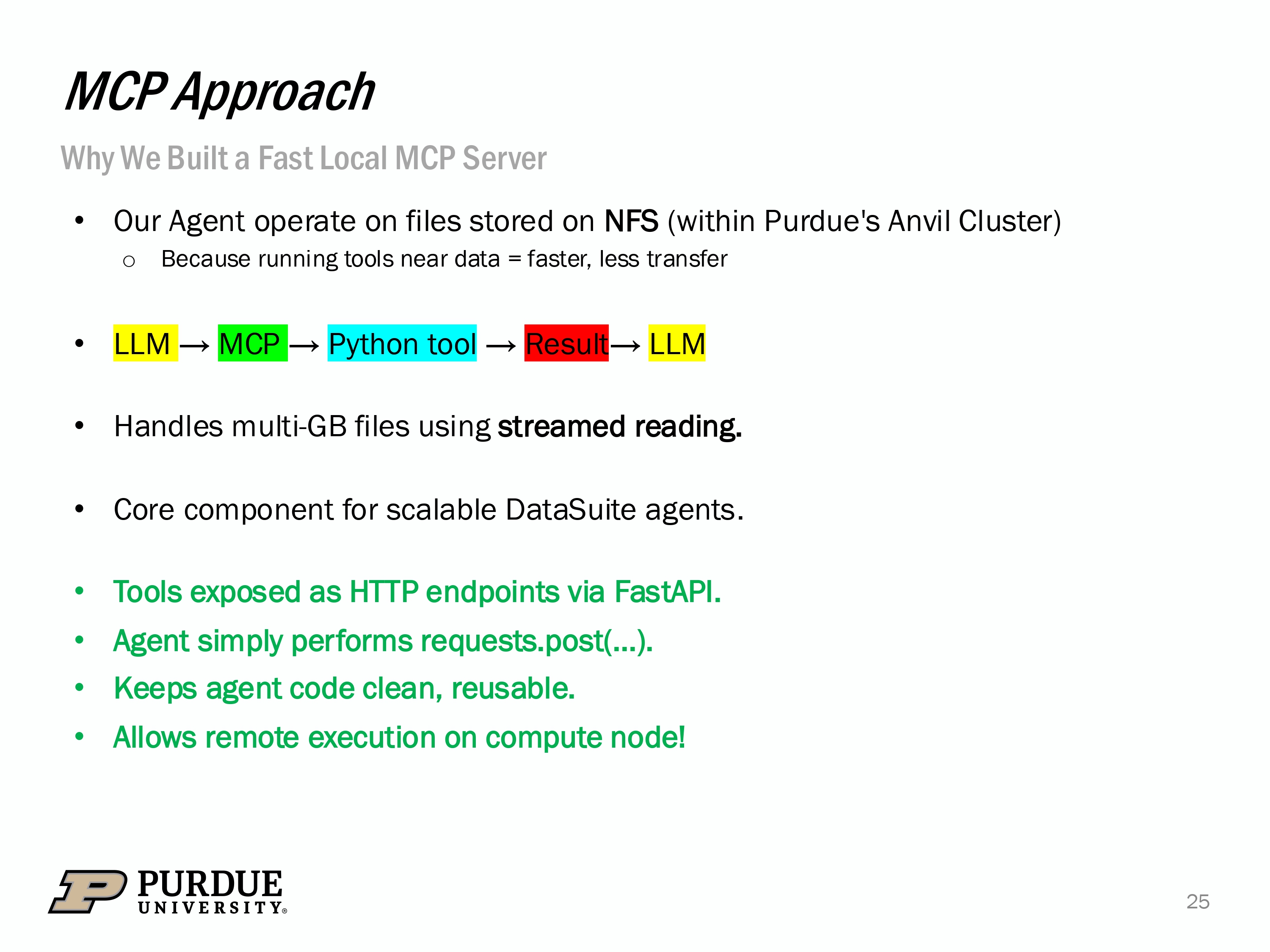 - Architecting full-stack layer integrating FastAPI backend, Dash frontend, LangGraph/DSPy agents & DuckDB vector search on RCAC Anvil.