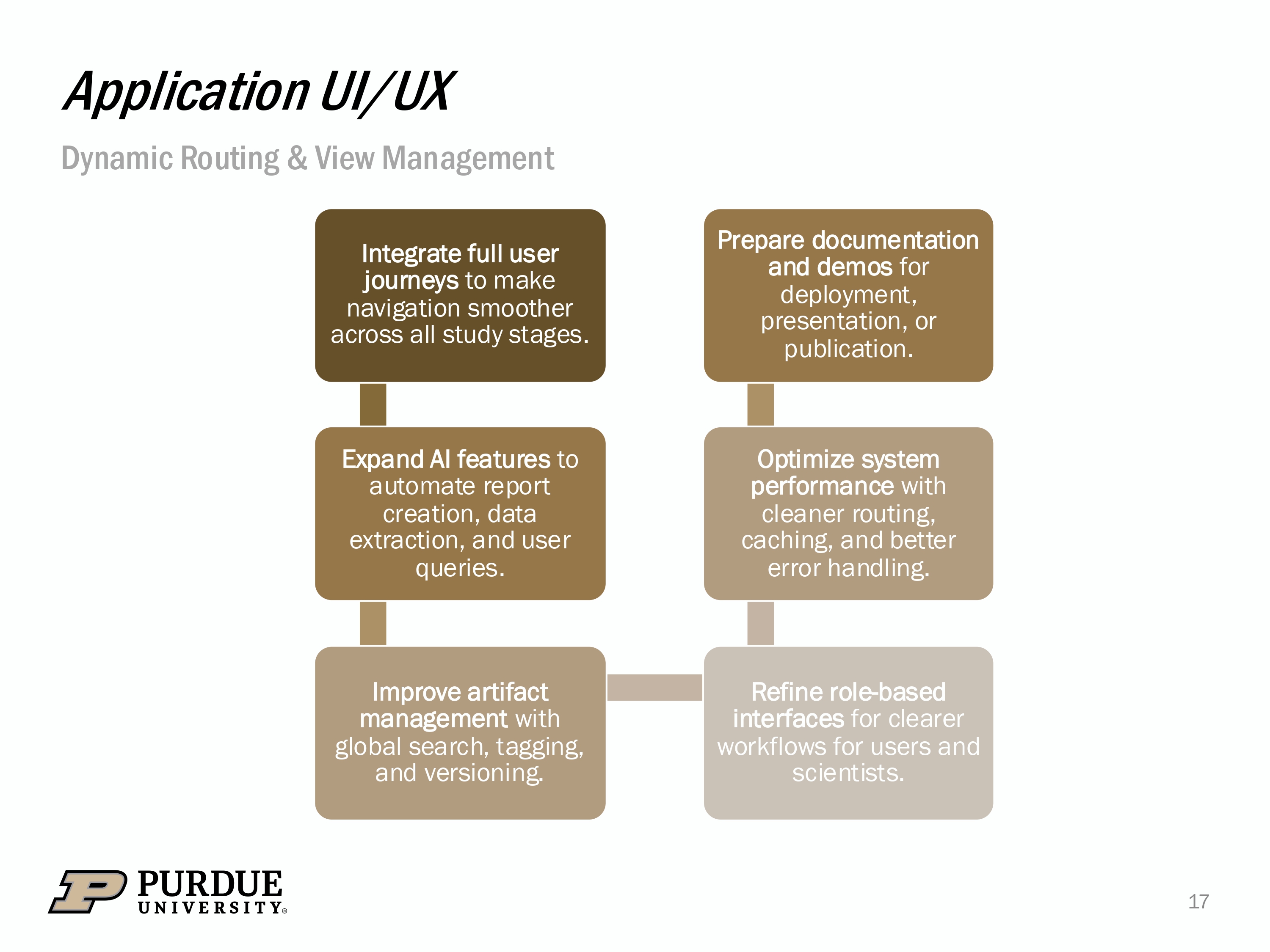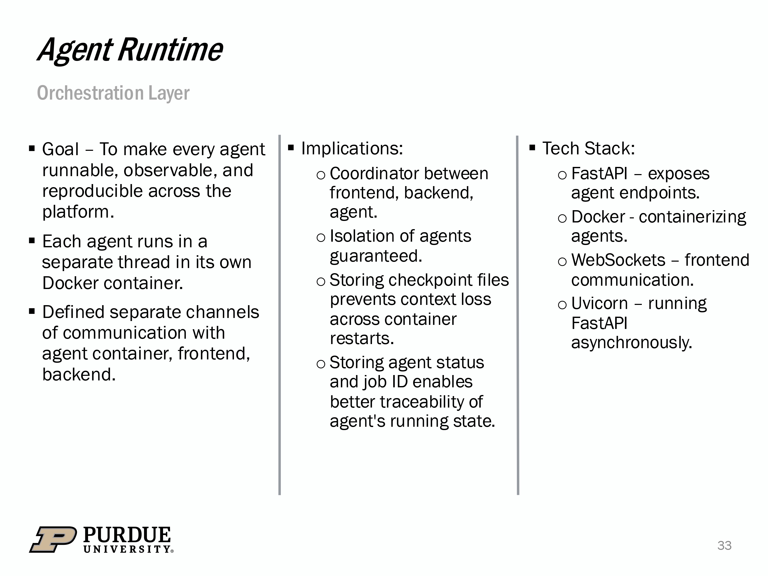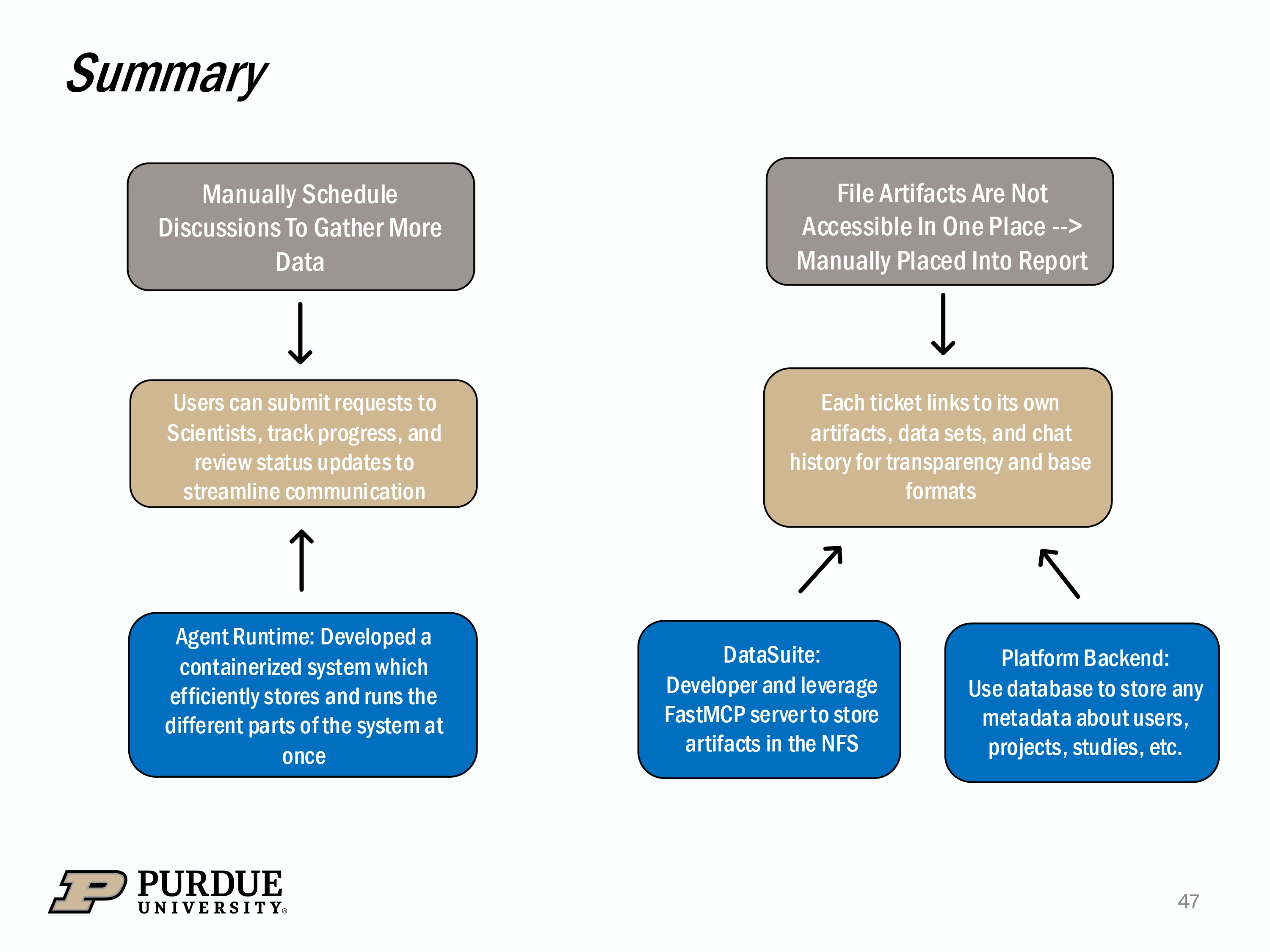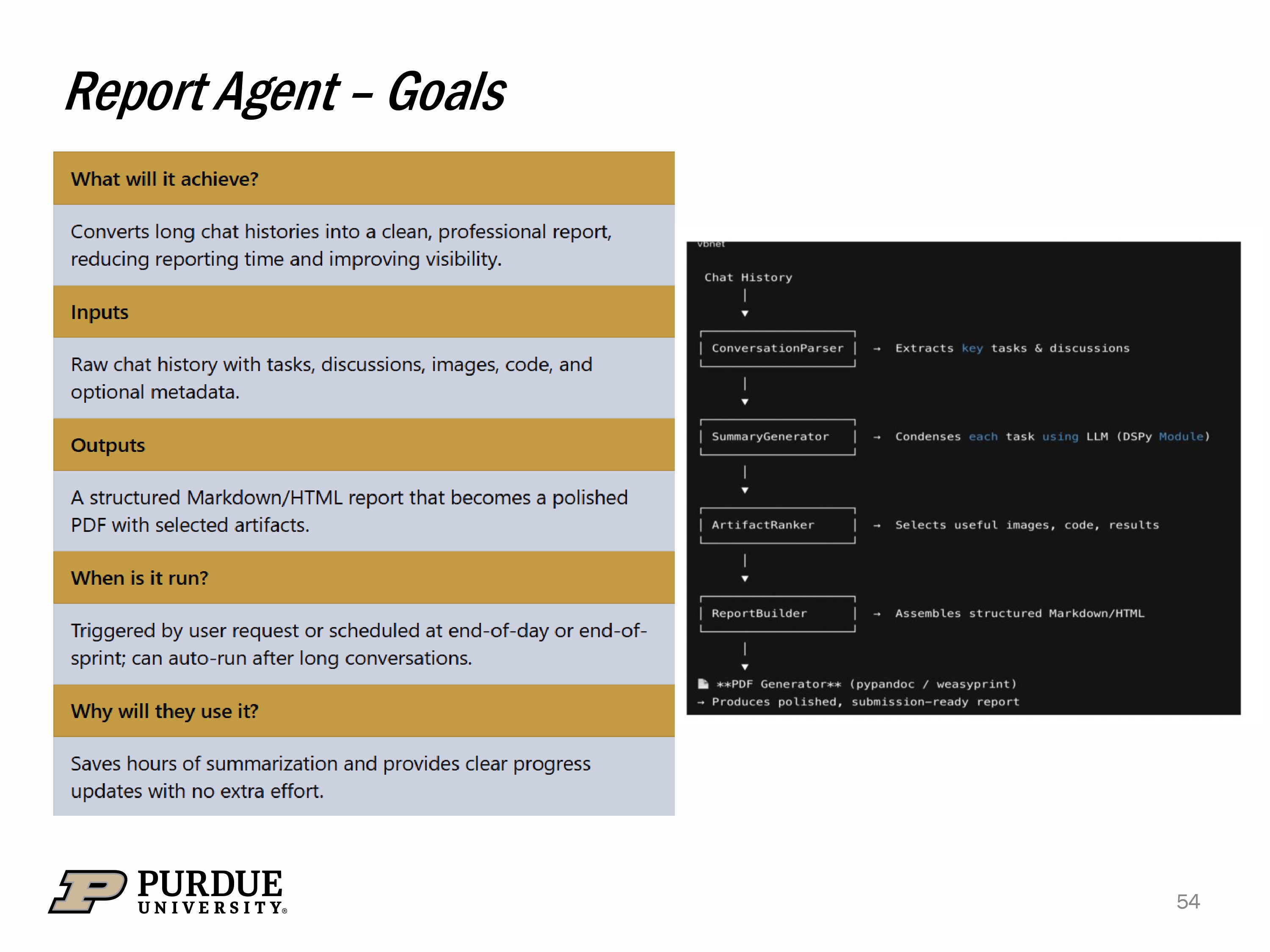 - Architecting full-stack layer integrating FastAPI backend, Dash frontend, LangGraph/DSPy agents & DuckDB vector search on RCAC Anvil.