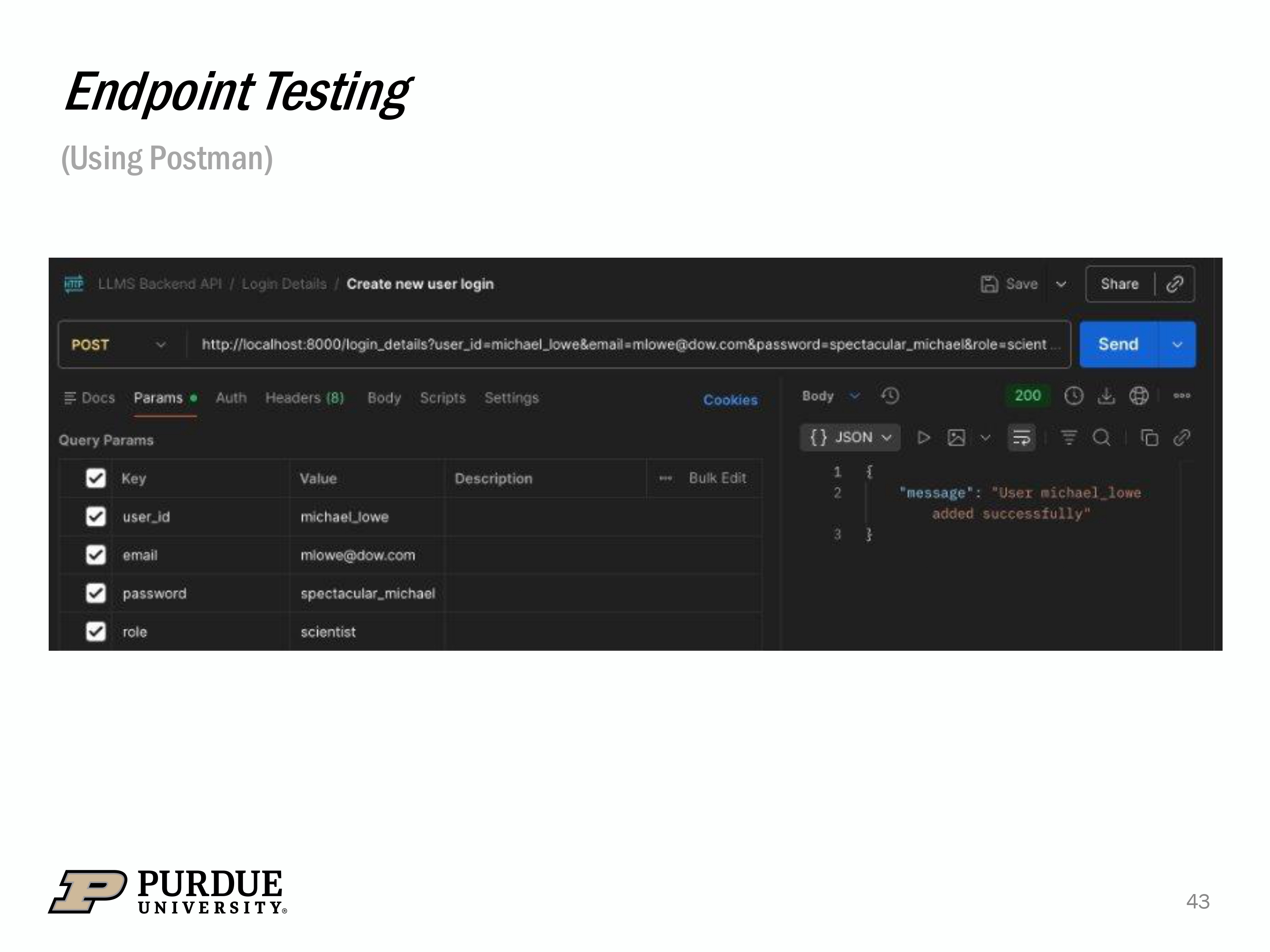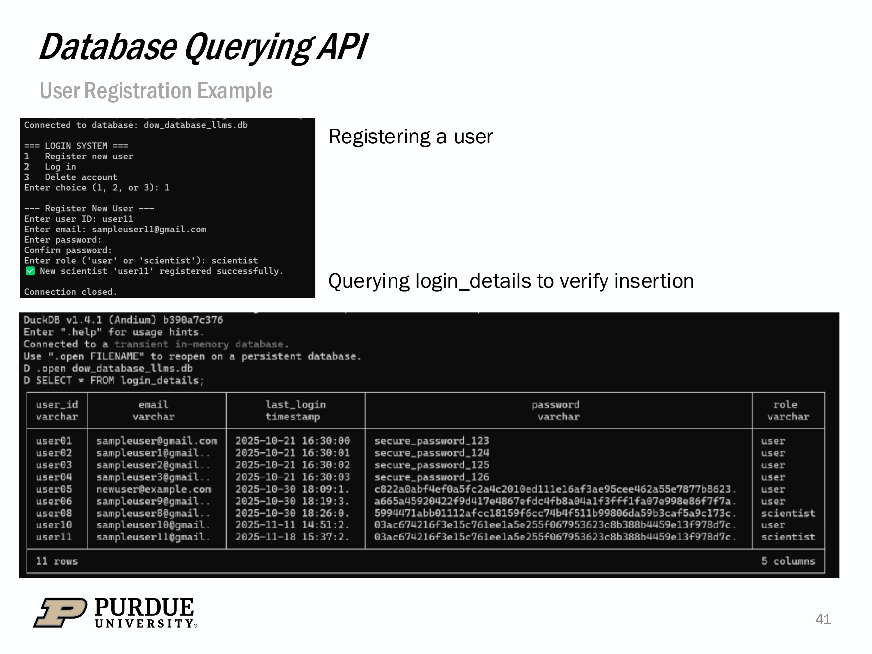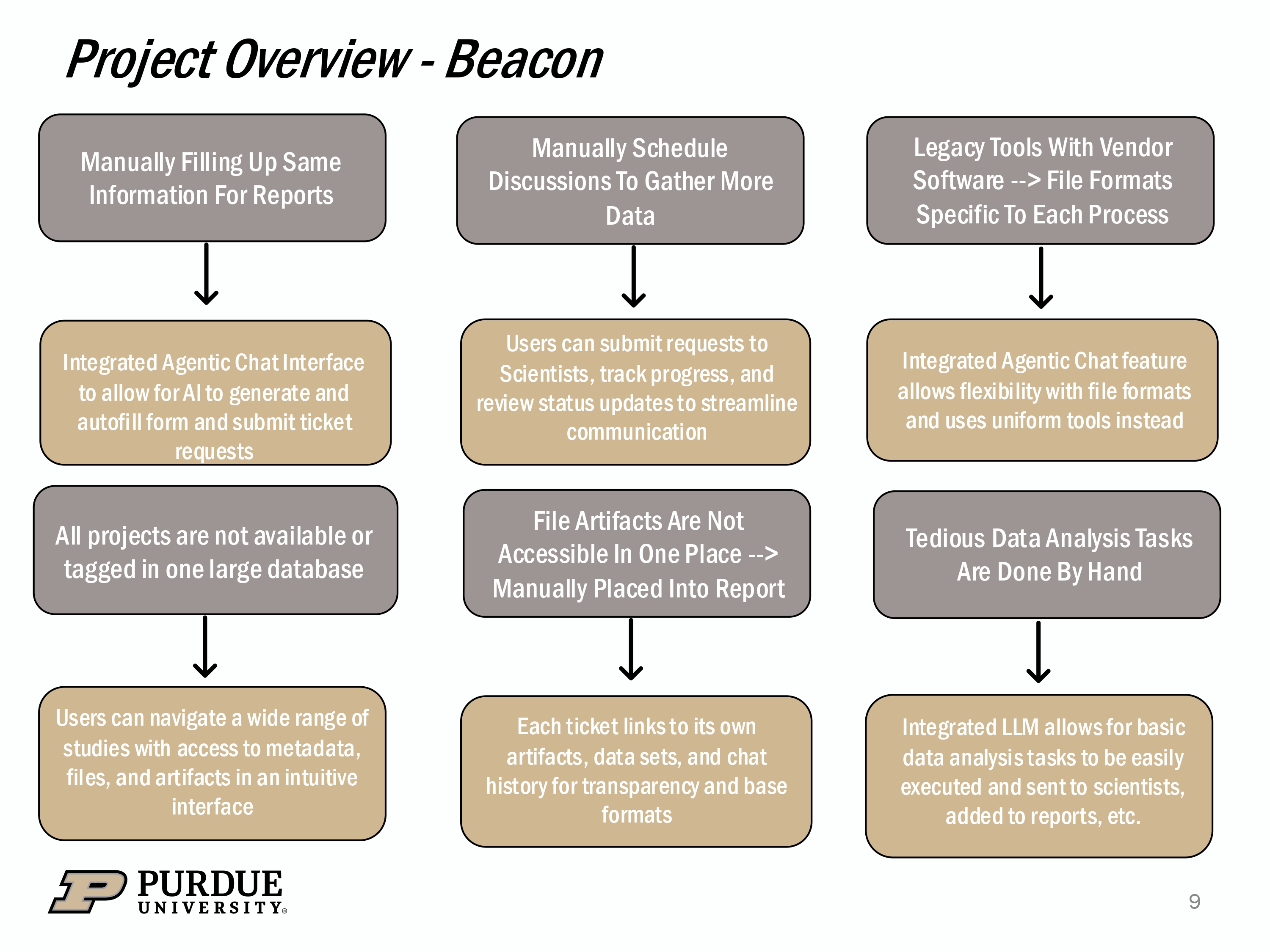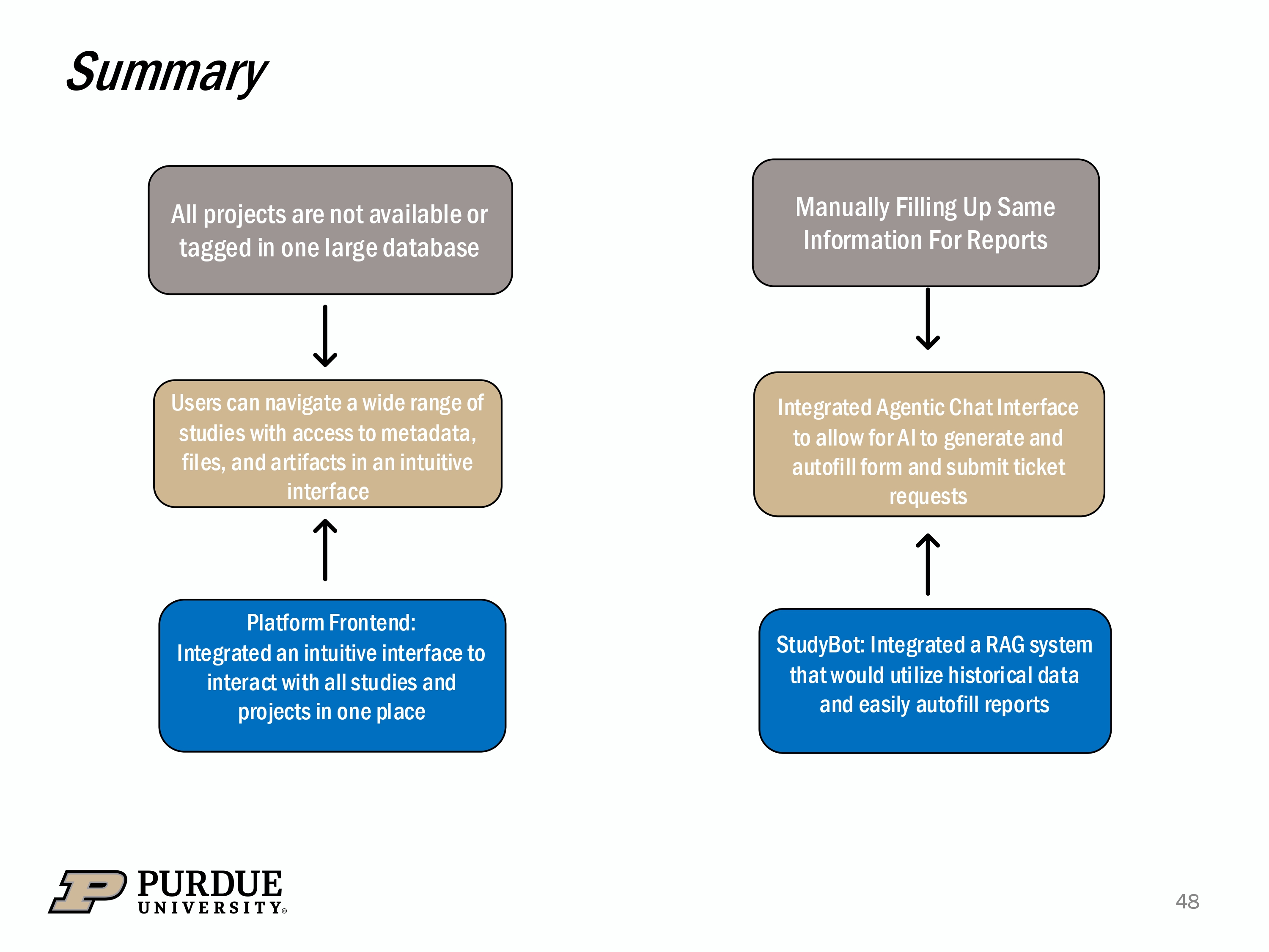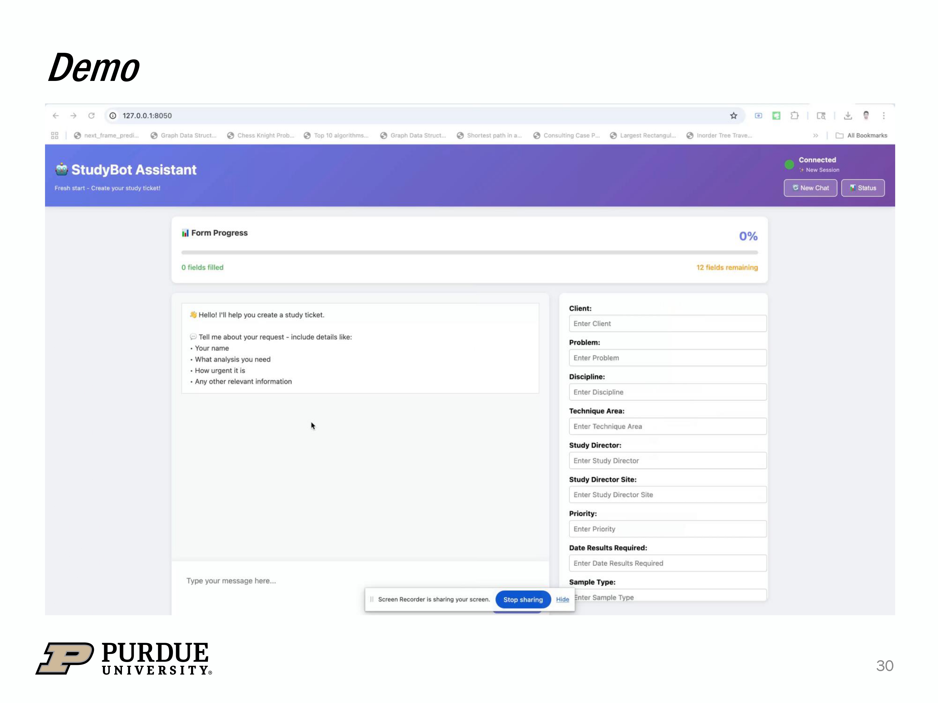 - Architecting full-stack layer integrating FastAPI backend, Dash frontend, LangGraph/DSPy agents & DuckDB vector search on RCAC Anvil.