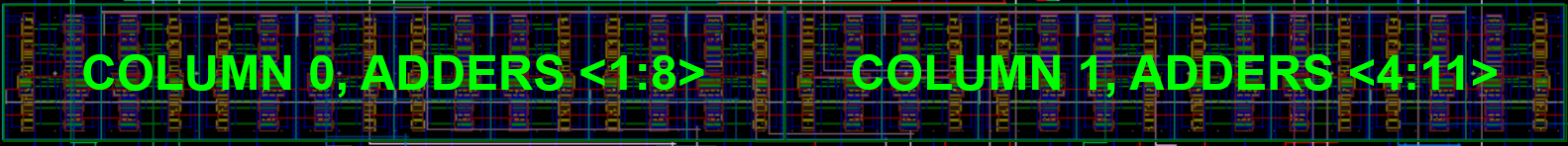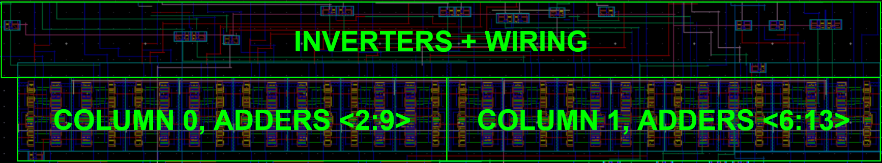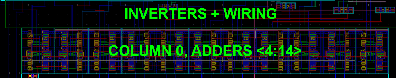 for the worst-case delay. The exploitation of the inversion property also reduced the overall transistor count by 298, leaving the final chip area measuring at 3305.51 um^2. Parasitic extraction resulted in near doubling of the worst-case delay and energy consumption results, but the metrics remained well within the specifications, having a positive slack of
